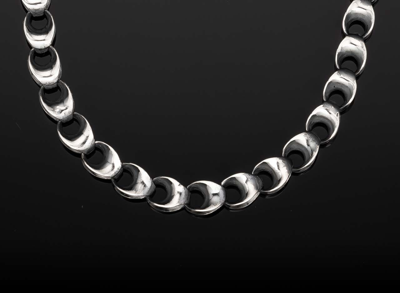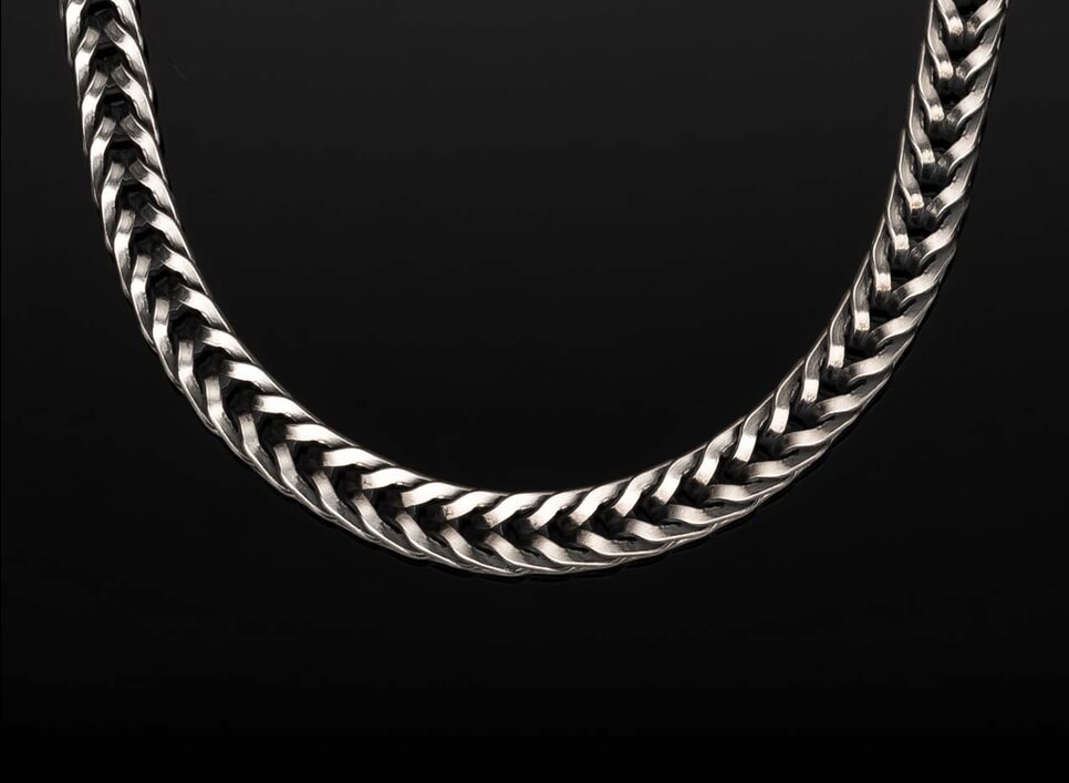Turn to William Henry for unique and captivating designs handcrafted with hardy materials. Braided Kevlar cord, hand-wrapped heavy gauge sterling silver chain, or a black PVD coated chain provide superior comfort and refinement. These state-of-the-art materials complement hand-engraved artistry, resulting in a highly wearable piece that is both casual and sophisticated.