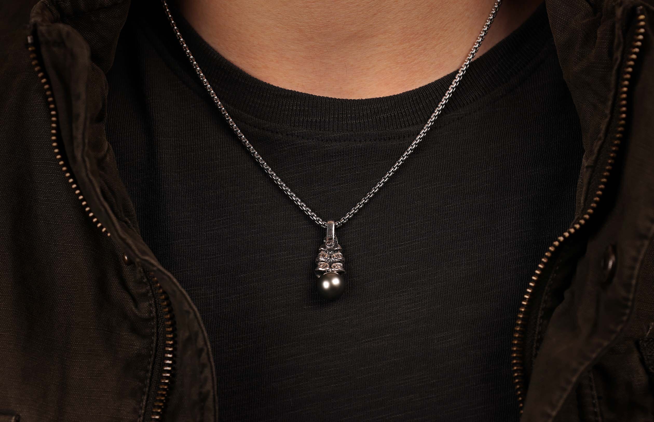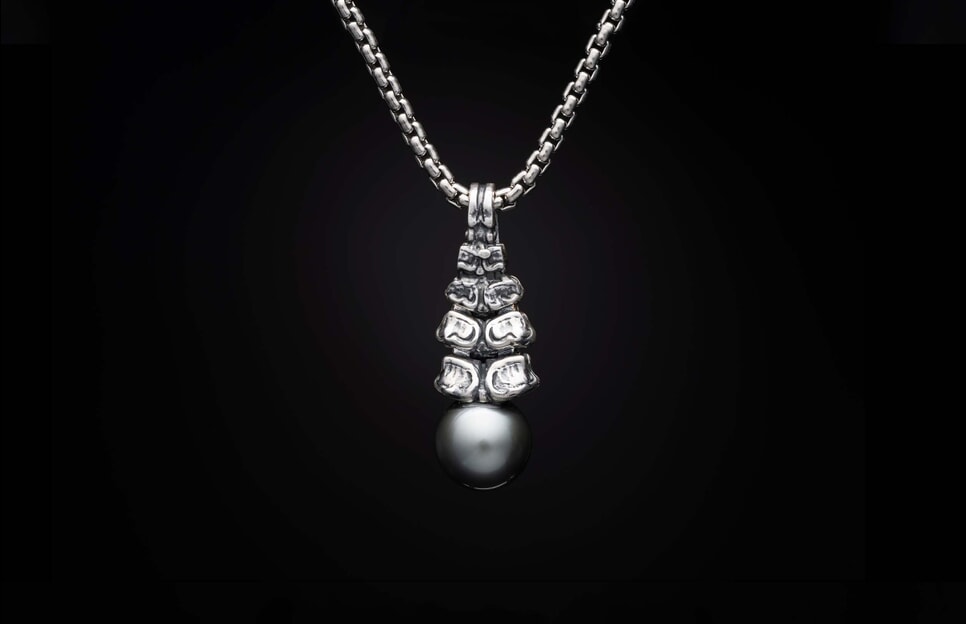 William Henry's designer necklaces are sculpted with exotic, sustainably sourced materials and gemstones from around the world. These one-of-a-kind materials and techniques offer wearers an exclusive piece with immutable charm. Durability is intentionally intertwined with stylish materials like pearls, rose gold, black diamonds, and high-tech carbon fiber, incorporating rich and tasteful tones with a sleek and elegant necklace design.