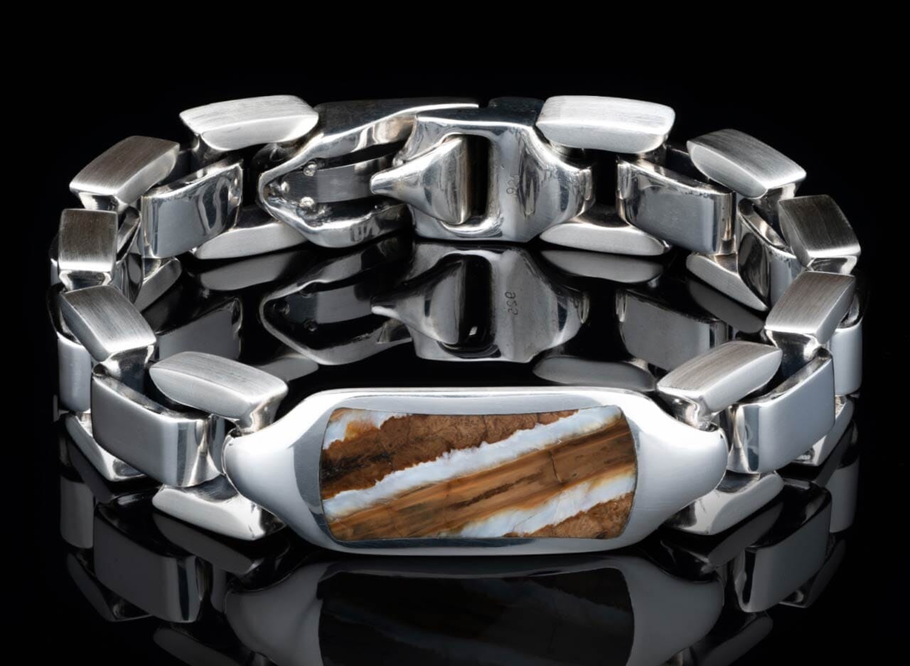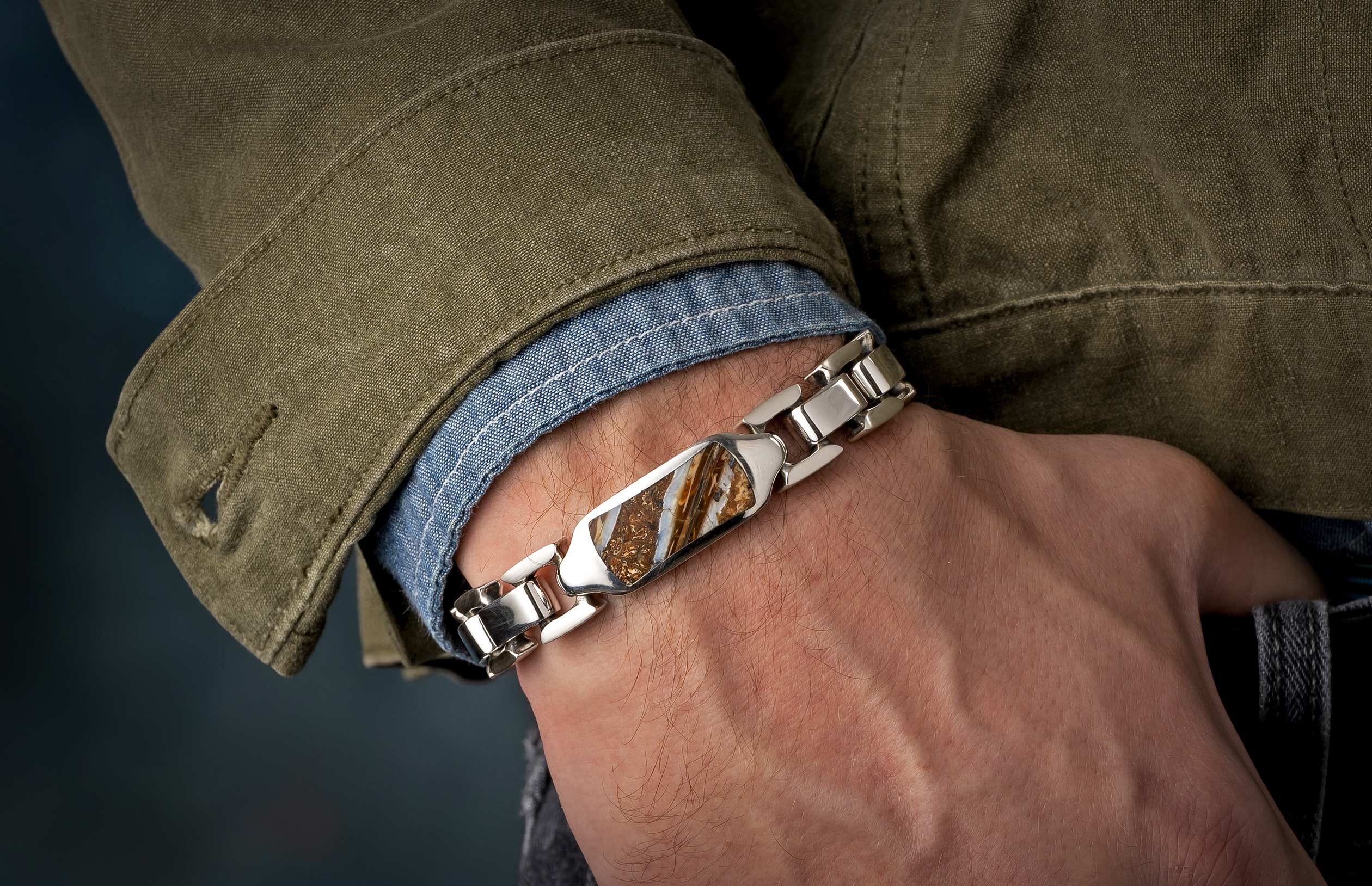 William Henry bracelets have their own distinctive flair and unique attributes that make them truly wearable works of art. Wearers may adorn themselves with billion-year-old cosmic meteorite inlaid in sterling silver links, fossil mammoth tooth beaded bracelets, or 100,000-year-old fossil coral beads salvaged from an abandoned lime pit in the Florida Keys. Rare and striking materials are specifically designed to elevate any casual or formal ensemble.