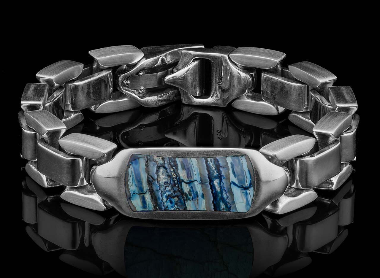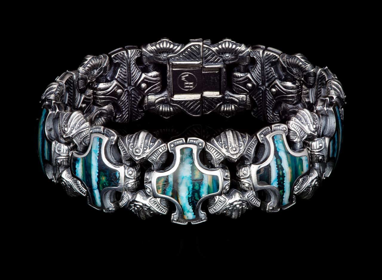 William Henry bracelets have their own distinctive flair and unique attributes that make them truly wearable works of art. Wearers may adorn themselves with billion-year-old cosmic meteorite inlaid in sterling silver links, fossil mammoth tooth beaded bracelets, or 100,000-year-old fossil coral beads salvaged from an abandoned lime pit in the Florida Keys. Rare and striking materials are specifically designed to elevate any casual or formal ensemble.